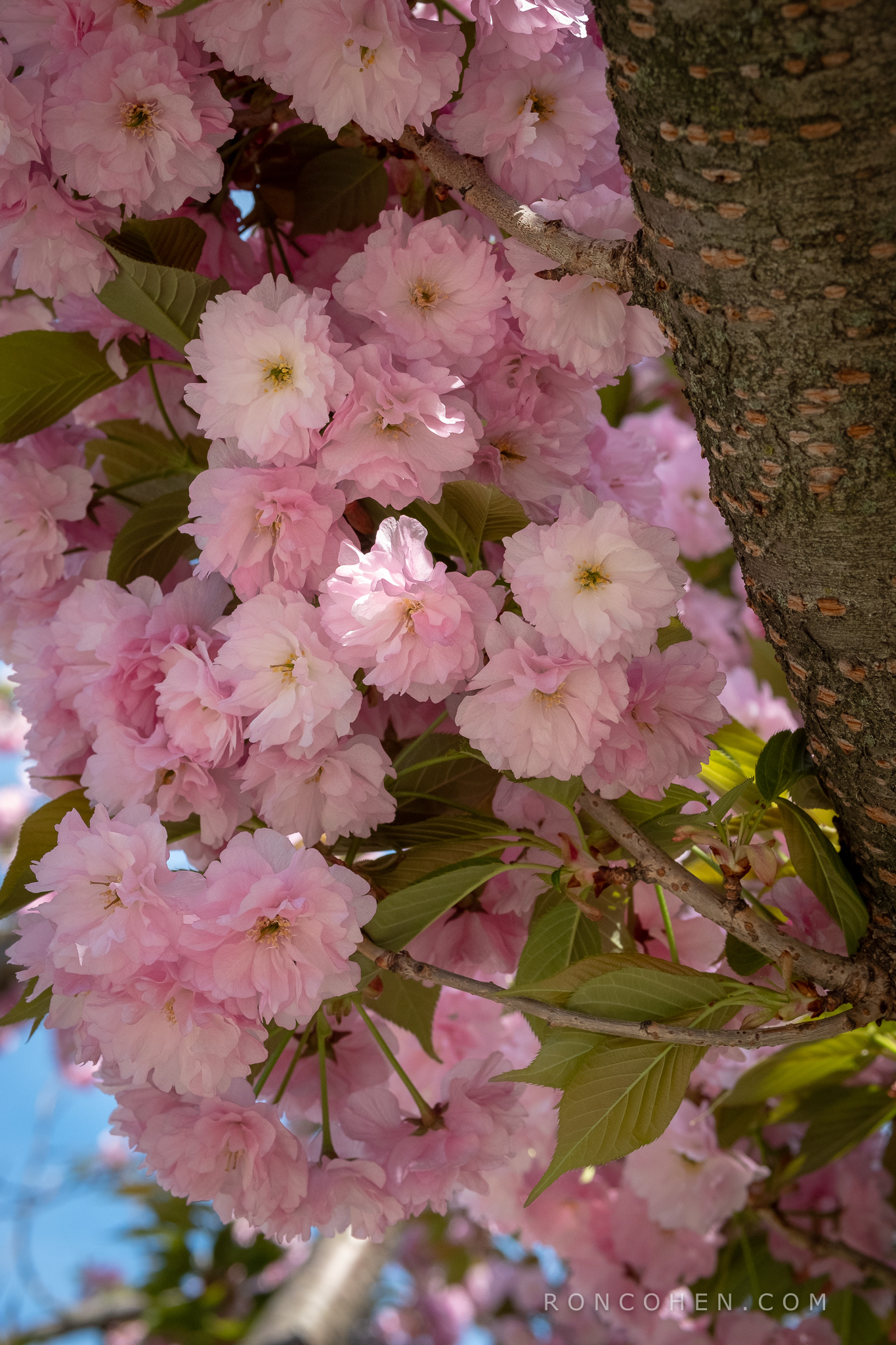 Two ancient, gnarled cherry trees stand beside Waltham City Hall, every spring favoring us with masses of exquisite, pink-tinged flowers. Theirs are not ordinary cherry blossoms, but an exotic, ruffled or frilly version.