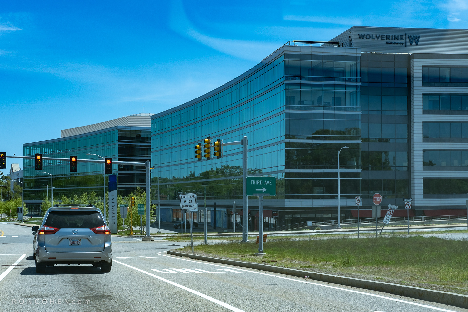 This photo series is devoted to one such office complex at 480-500 Totten Pond Road in Waltham. (It's one of several such marketed under the Citypoint brand.) These photos were taken on a Sunday when no one was about, at a time when Massachusetts was just beginning to ease its Cover-19 lockdown.