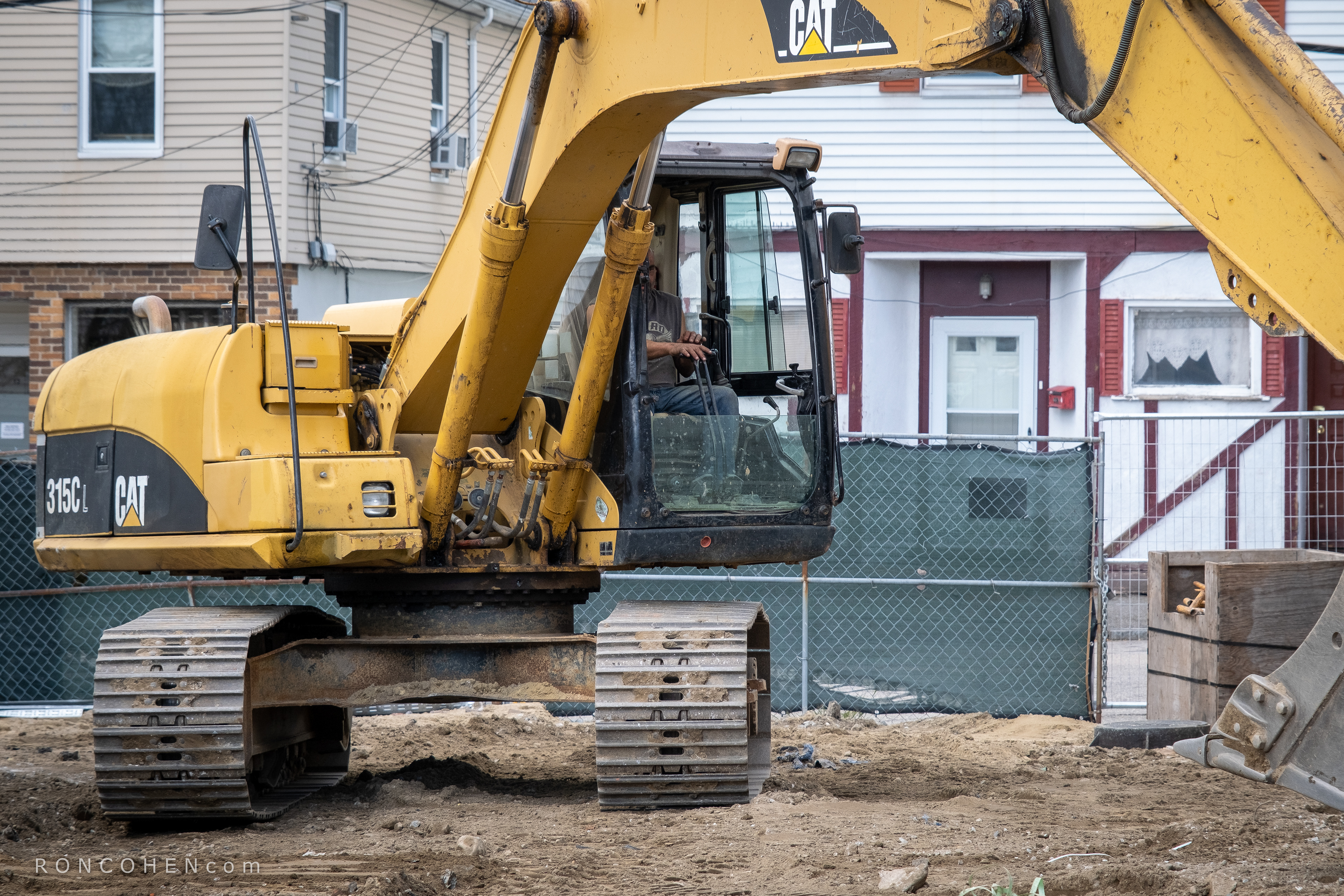 By the time I was ready to go home, the workmen were, too. They had finished a day’s work adding brick facing to this new, luxury apartment building. Once the exterior is finished and fully sealed against the weather, they will concentrate on the interior. The man changing into street clothes is the boss. All in all, the crew were fairly tolerant of my picture-taking. My challenge and temptation, as photographer, was the scaffolding: how to convey a sense of the scale and rhythm of this massive temporary structure. I confess I got carried away trying to get the right shot, and ended up with a passel of rejects.