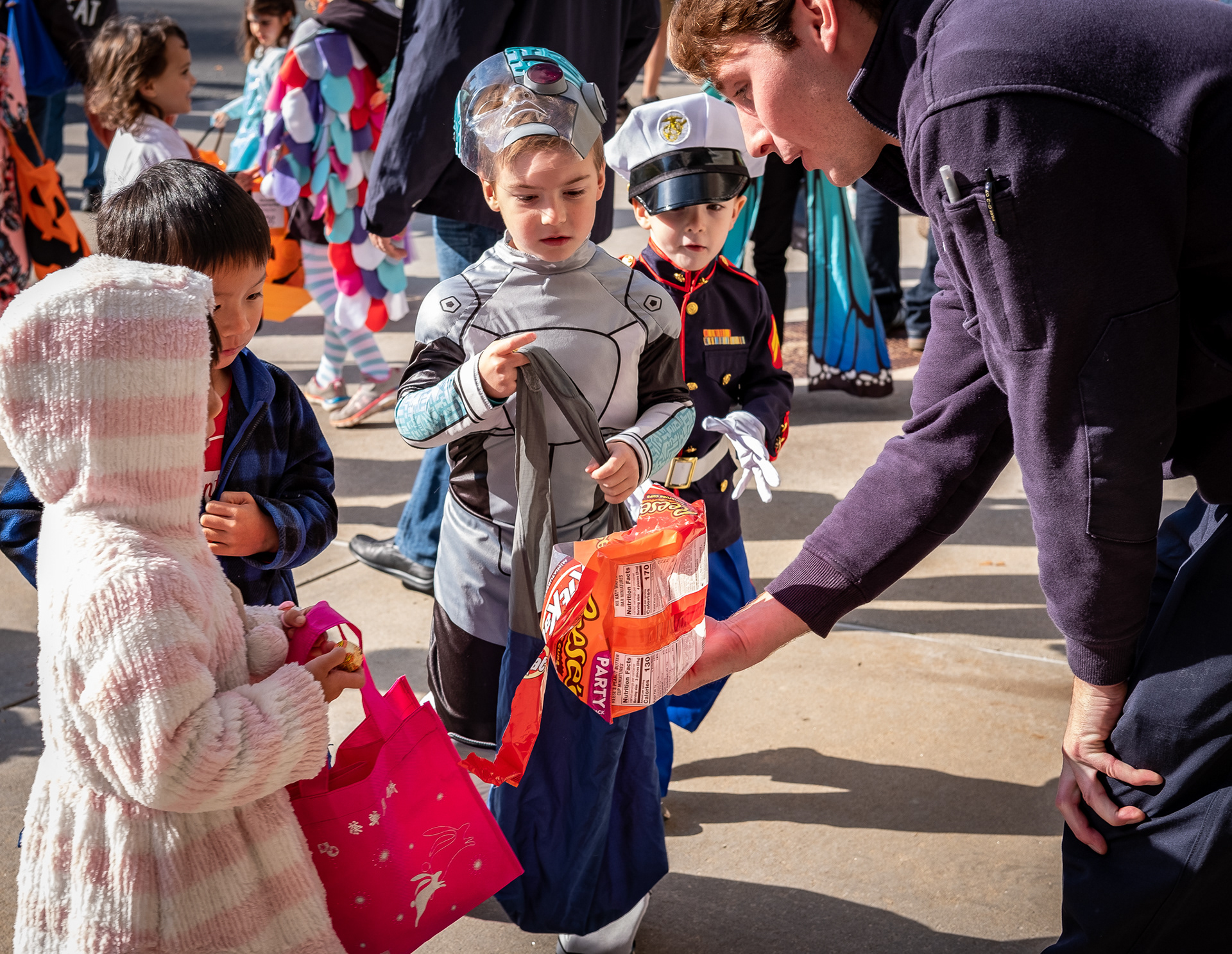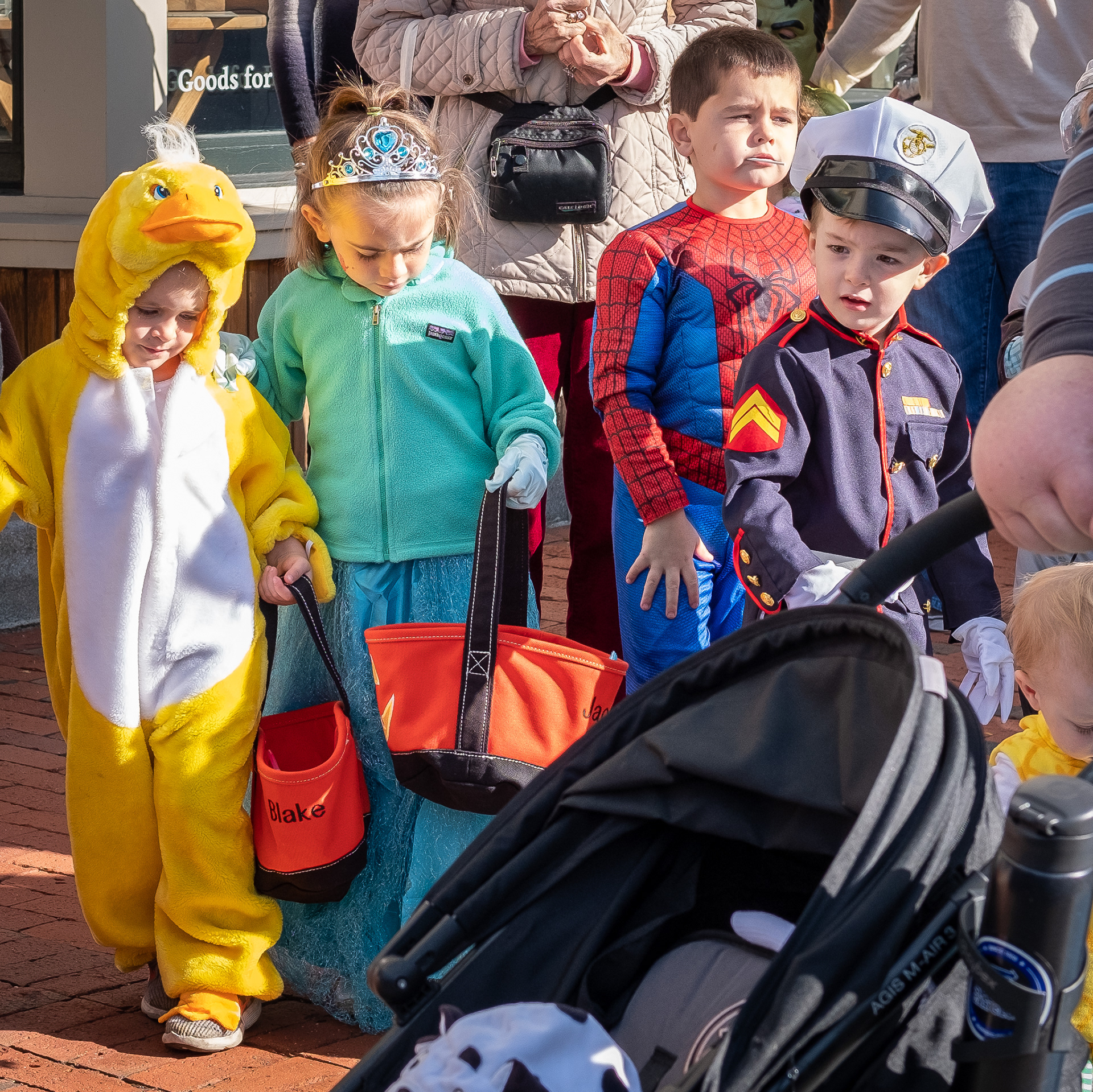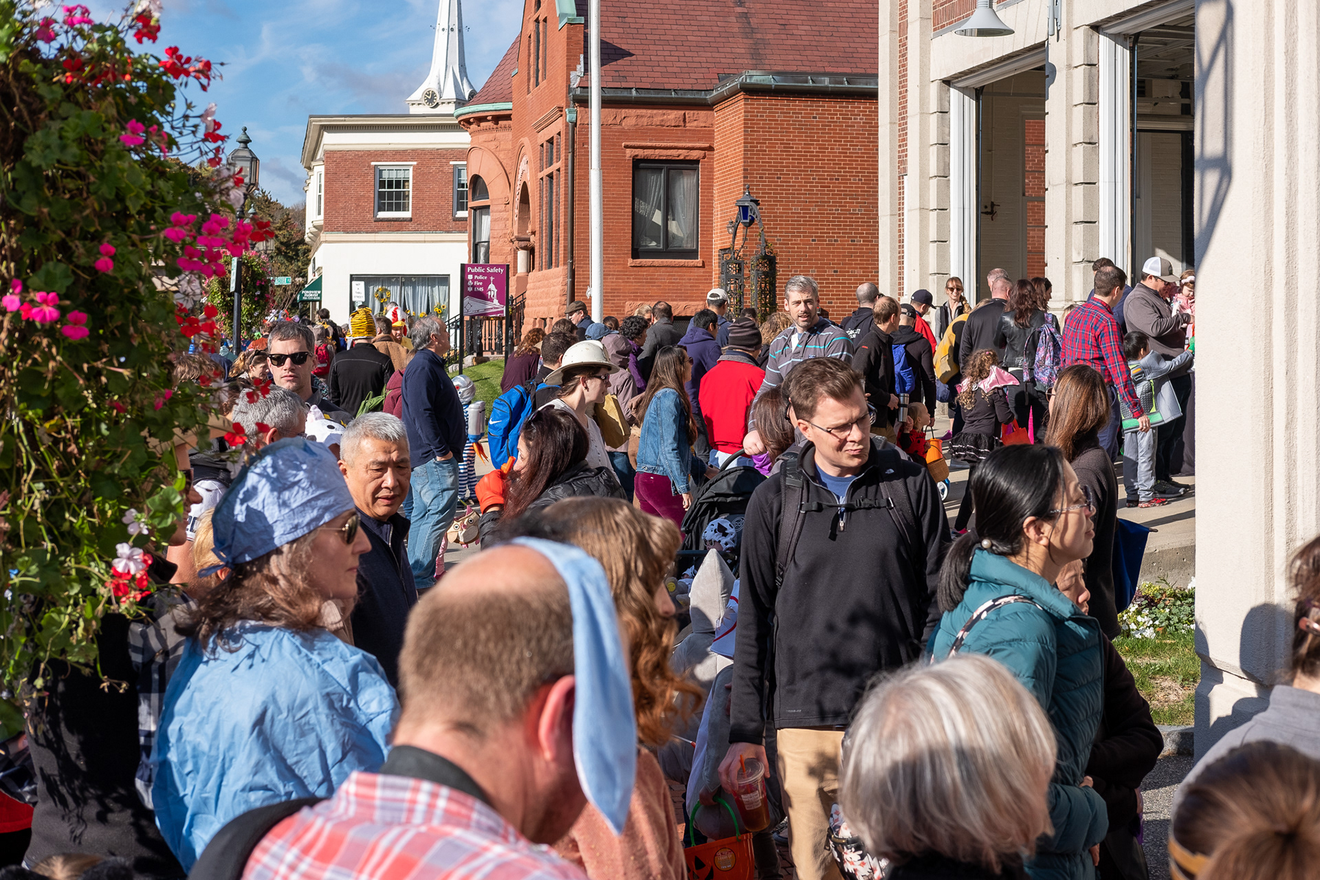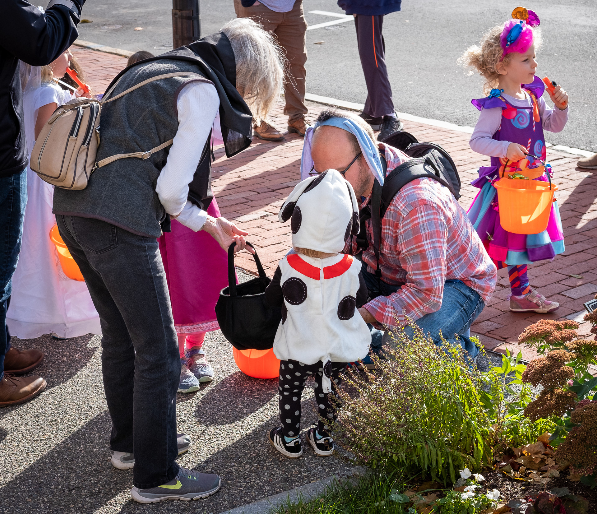 Winchester is an affluent Boston suburb a few miles north of Waltham. In this second of three installments, the parade that began at Town Hall reaches downtown, where the shop owners are waiting with candy for the kids. Note the family dressed in Winnie-the-Pooh costumes. Above all, this was the children’s day. I took this series on freelance assignment for the local newspaper. (See also Part 1 of 3 and Part 3 of 3).