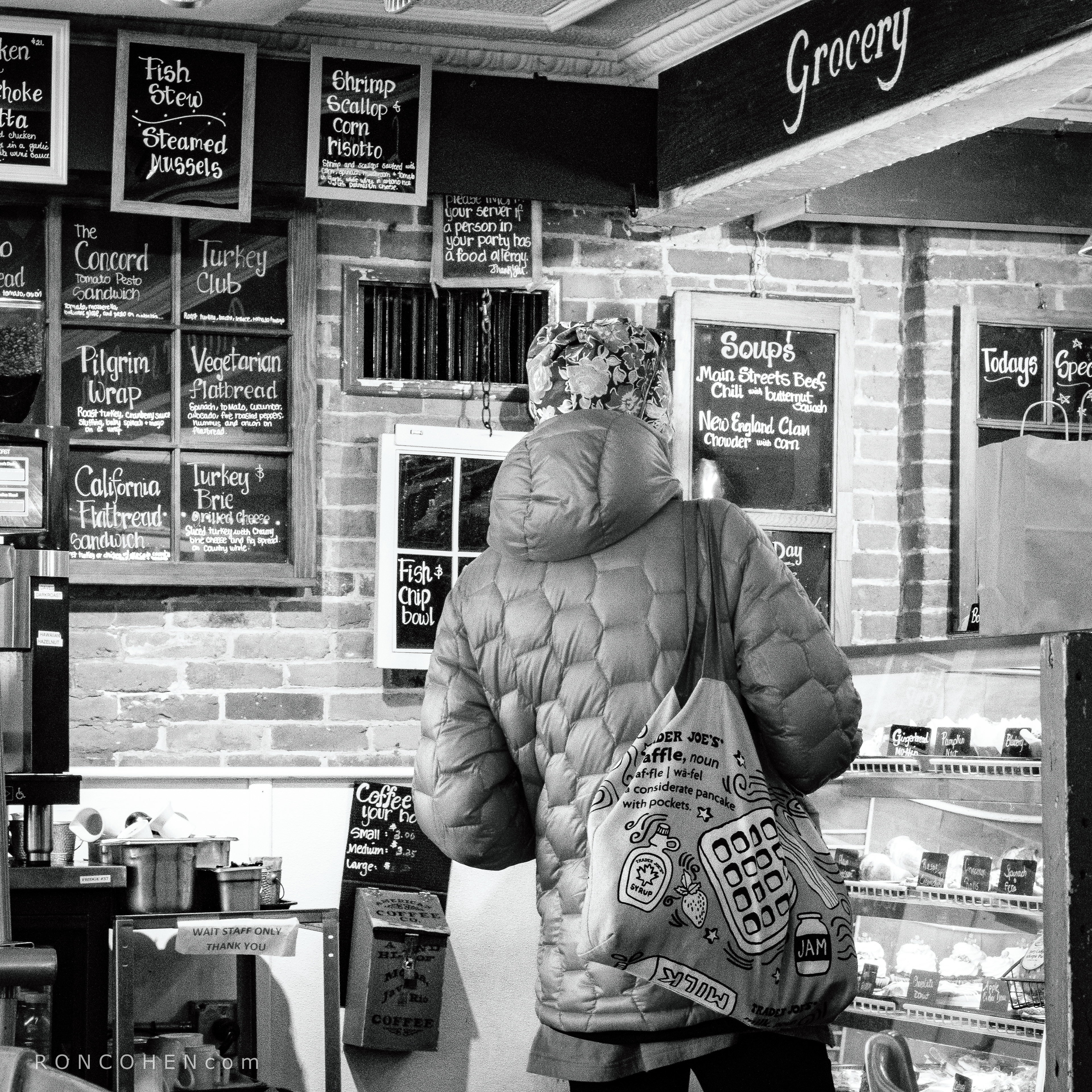 I was another beautiful, fall day in Concord Center. Shoppers and restaurant-goers were out in force. We ate a late brunch at the popular Main Streets Café. These photos focus on the café, and the pedestrians coming and going on the sidewalk outside.