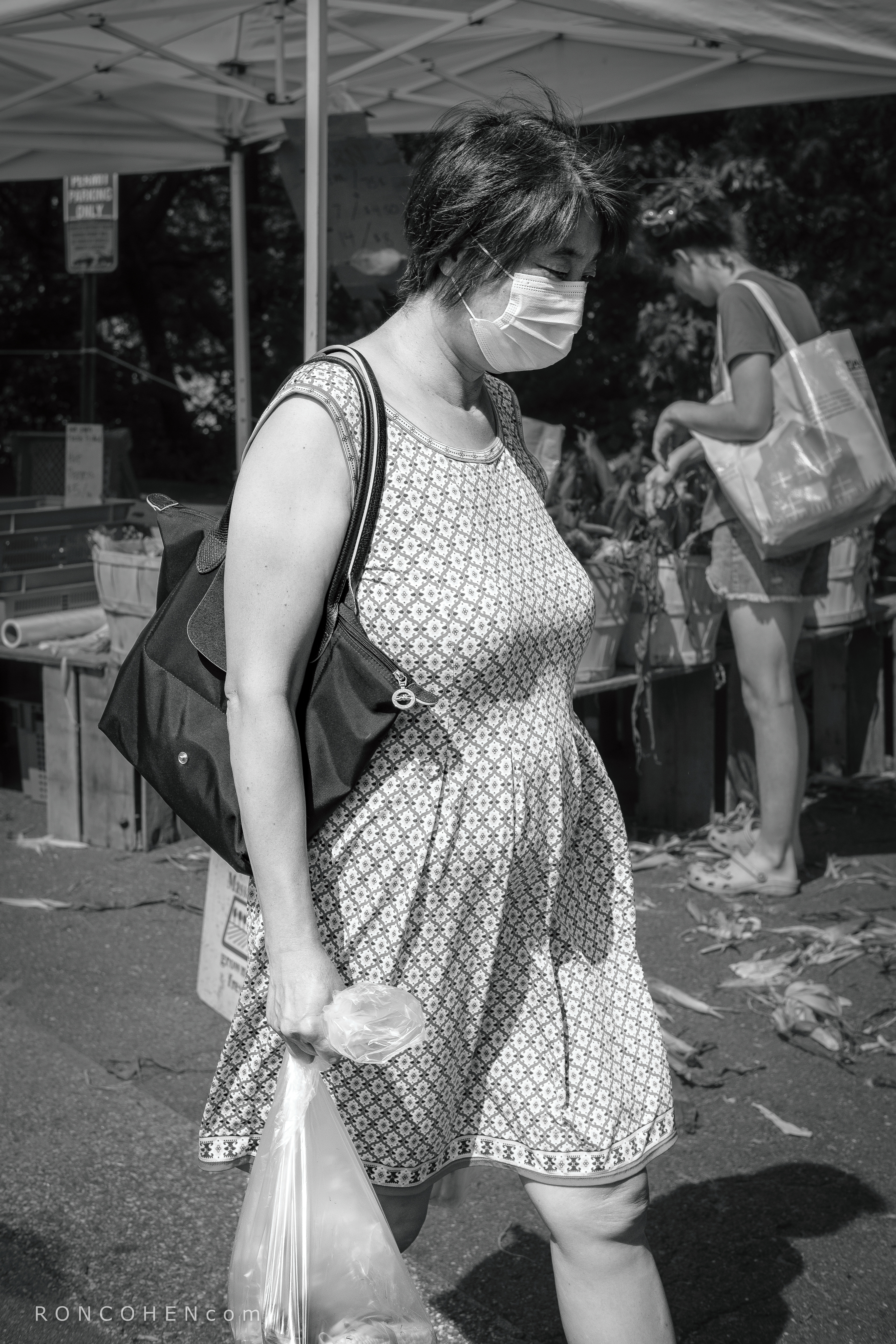 I used this outing at the Market to focus on people moving about, instead of standing still, as I’ve too often done in the past. Alas, movement about the market is leisurely and doesn’t often lead to high-impact images. But I found the exercise instructive all the same. Worried I was overdoing the walking-about theme, I included two portraits for variety.