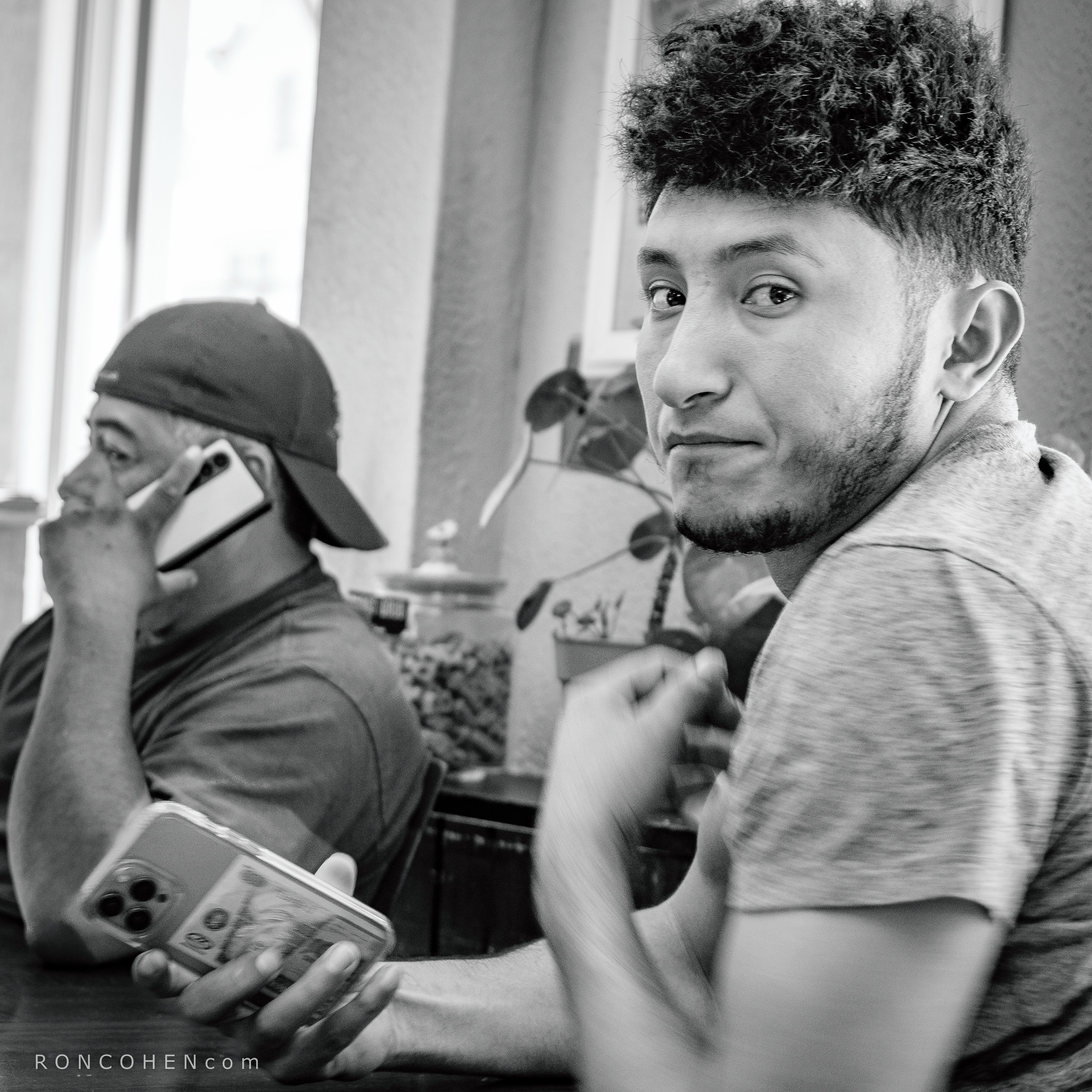 I brought my car to Peter’s today for work on the brakes. While waiting, I took a few photos. These two survived triage in my photo editor. The vehicle in the left-hand photo is not mine. The men in the right-hand photo came into the pizza joint next door to Peter's while I was having a slice.